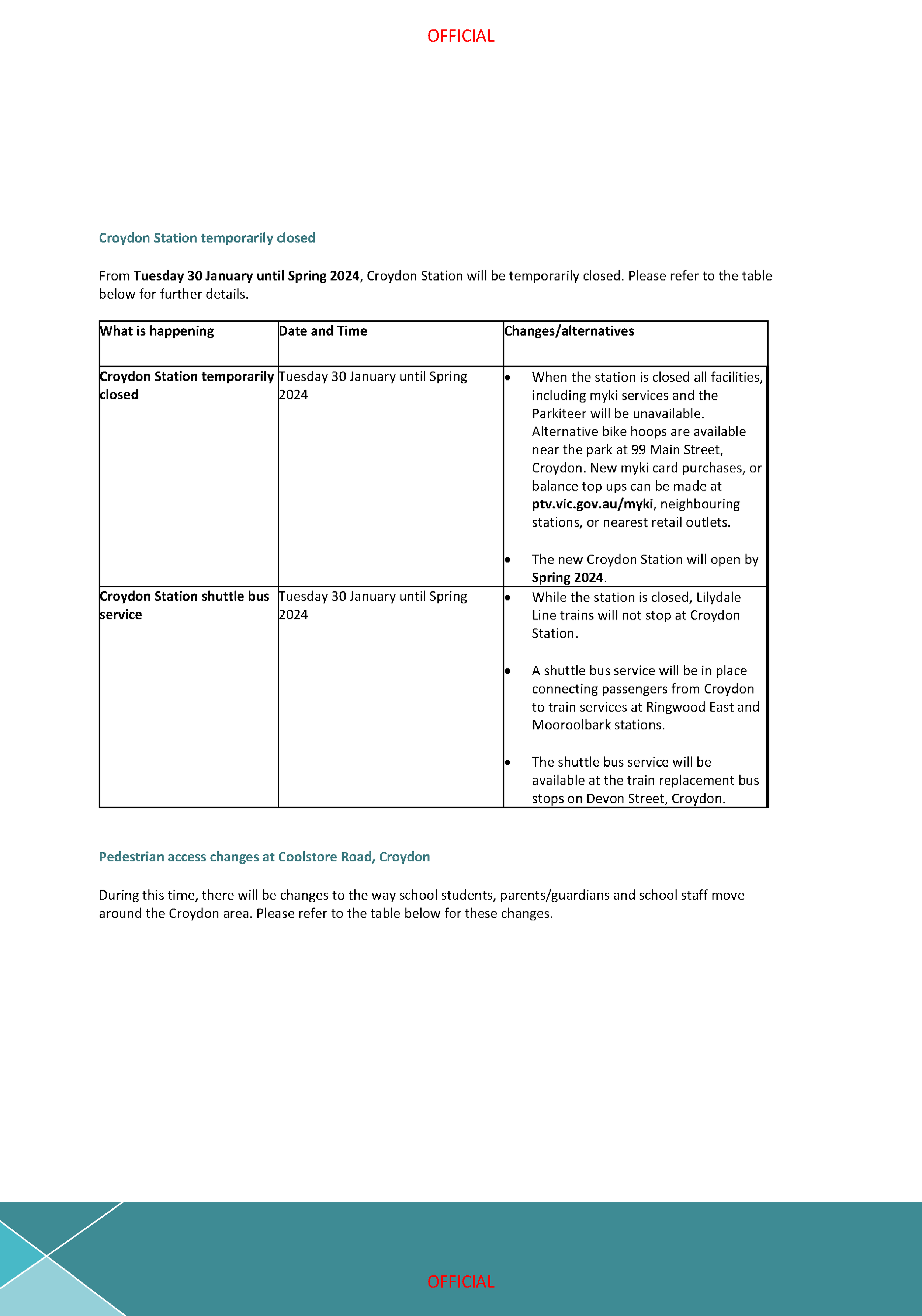 Croydon Schools Letter: Buses Replace Trains