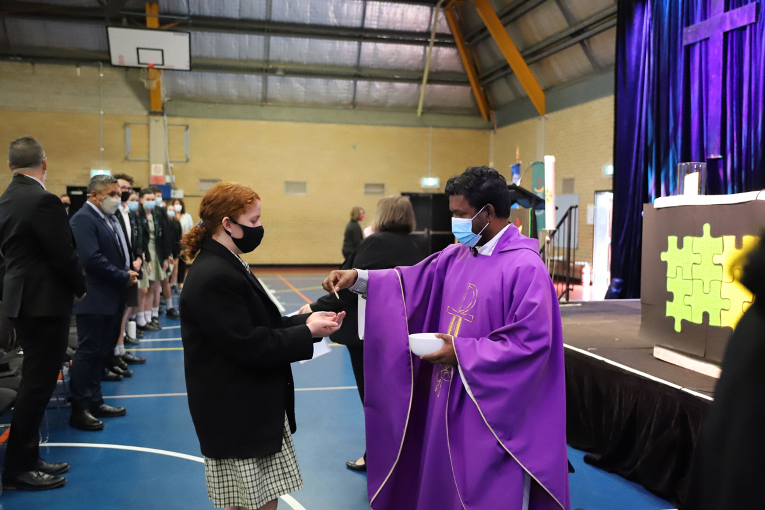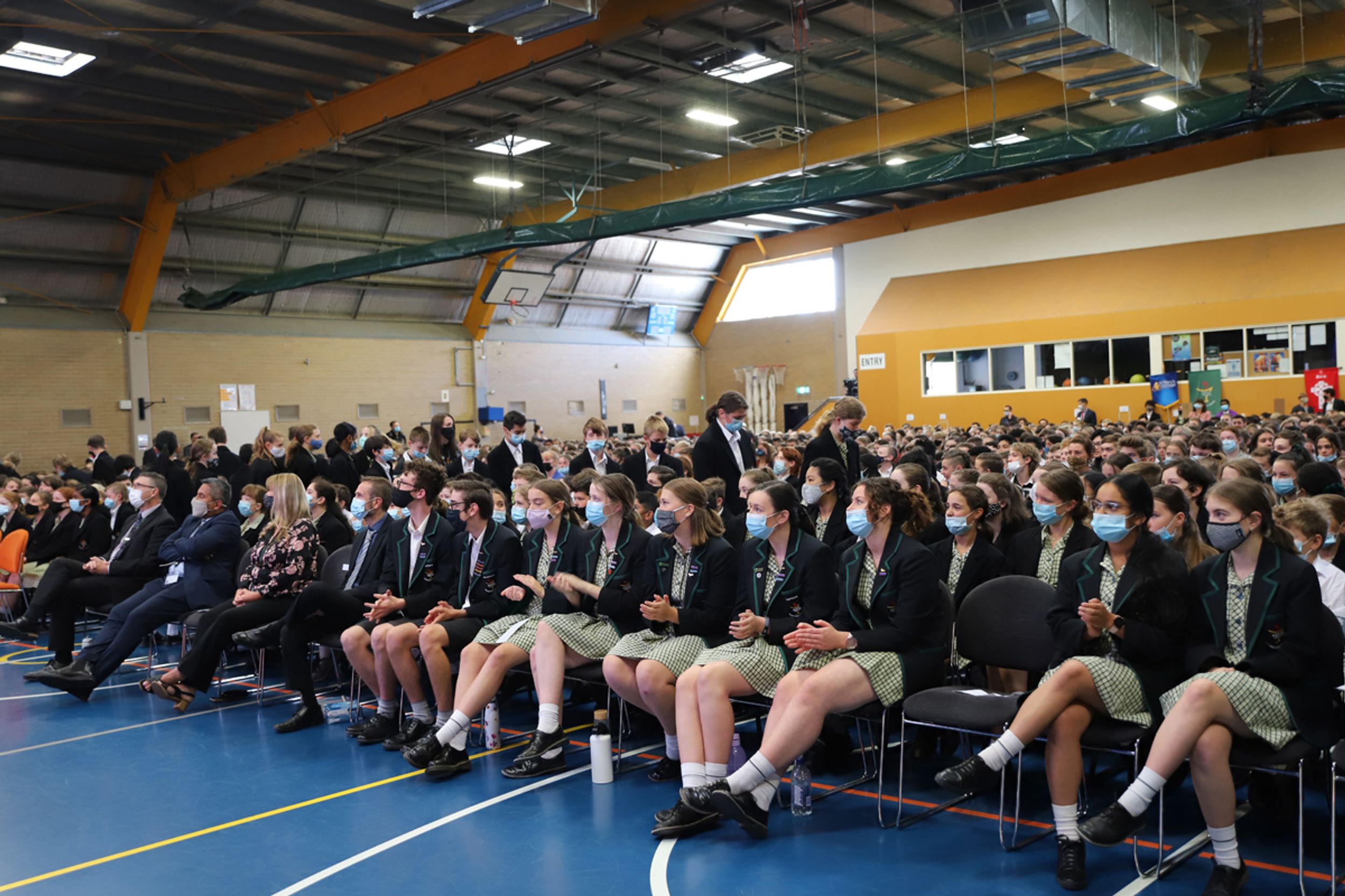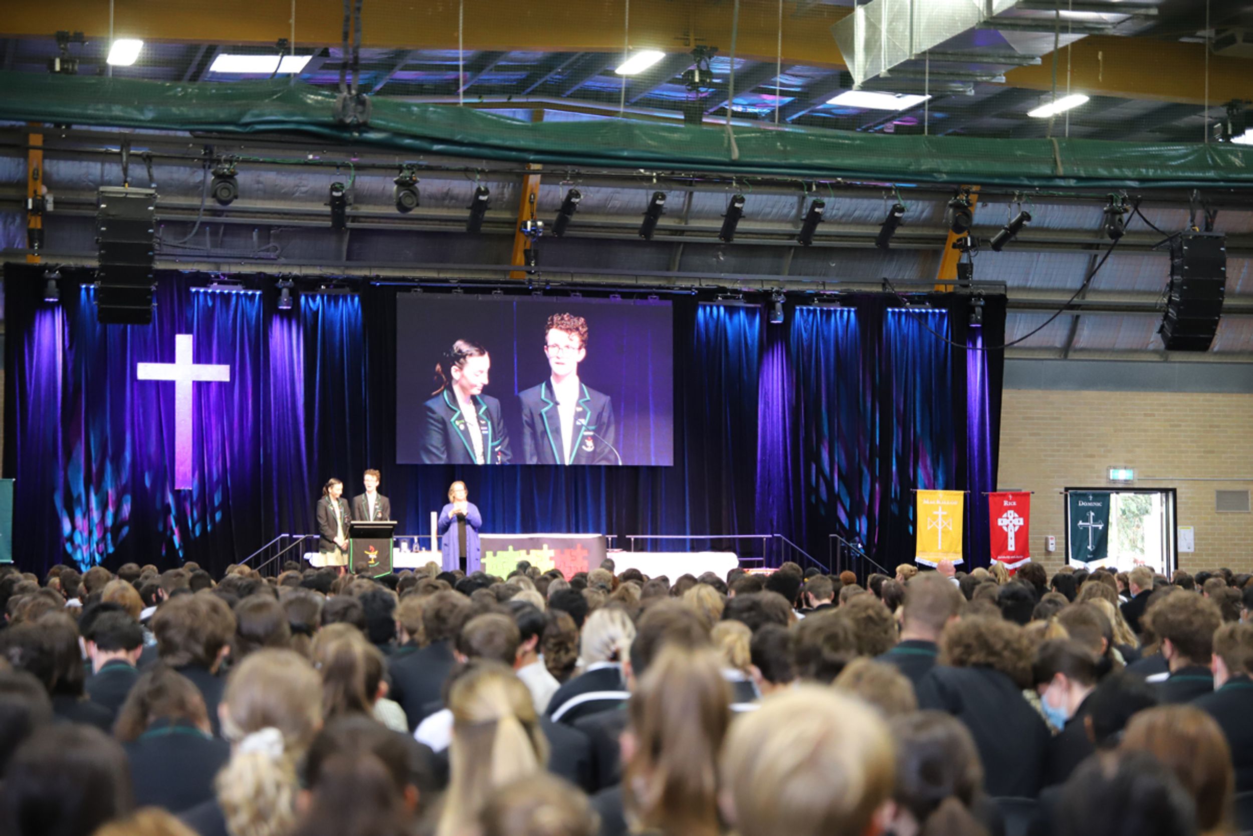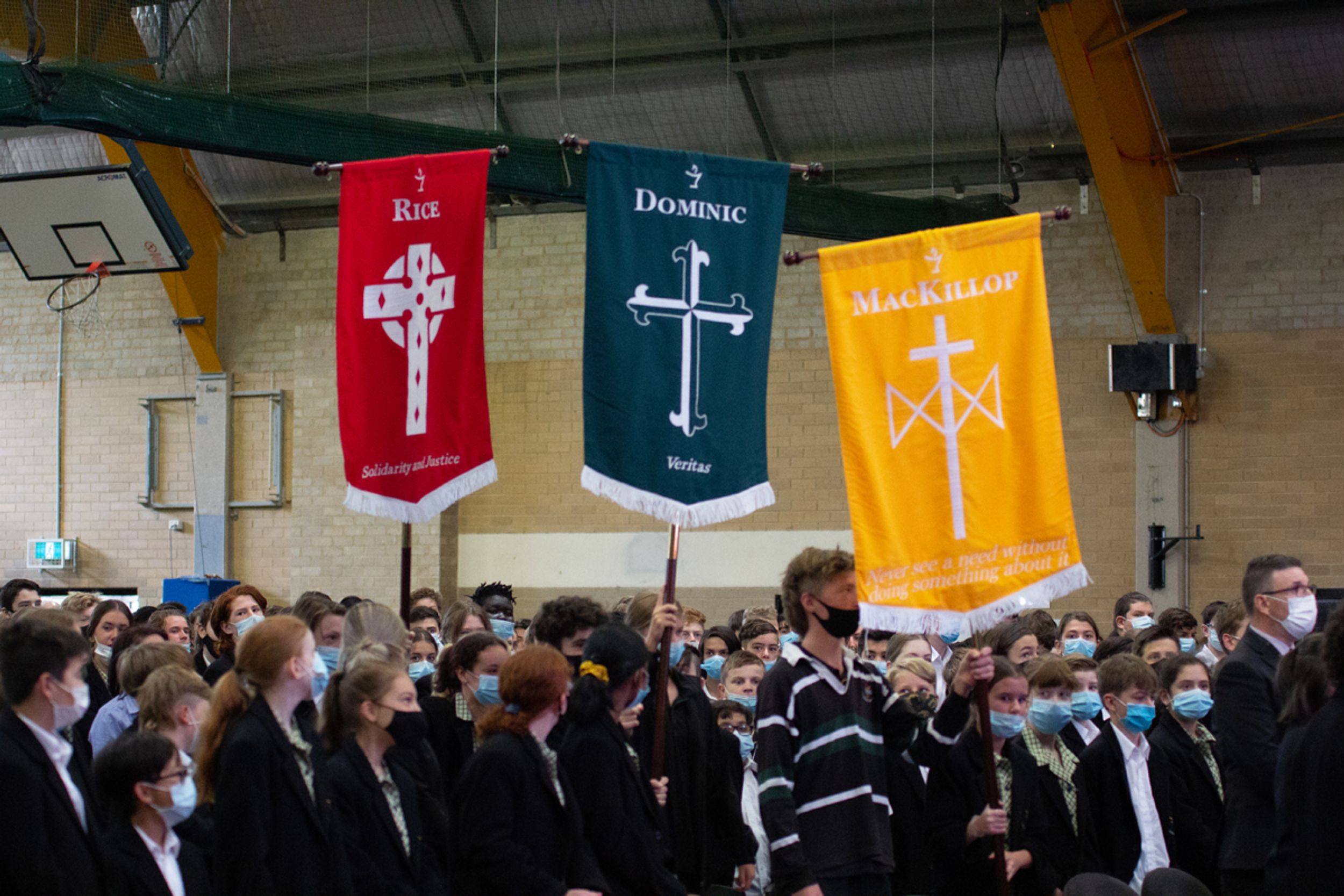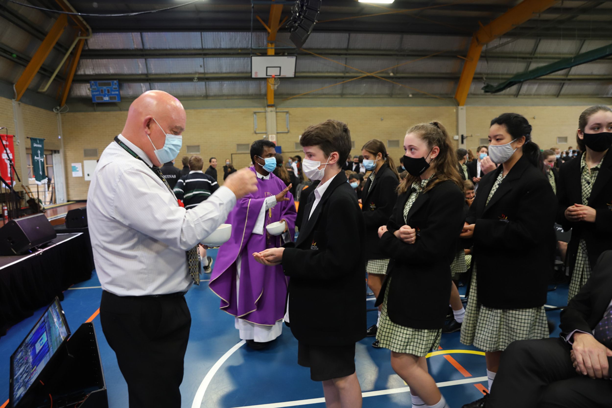 At the conclusion of Mass we moved into our Opening Assembly led by our College Leaders. Student voice is a huge element at our assemblies and we have very capable public speakers amongst our student body who benefit from the experience to present to their peers. The Deakin Shield was presented to Year 11 Dux (2020) Reuben Steen by Hon. Michael Sukkar MP who spoke to our community from Parliament House, Canberra. Mr Sukkar spoke of his own fond memories as a student of the College and acknowledged the excellent contribution that Reuben has made to College life. All student leaders were presented to the gathering and given their badges as they made a pledge to serve the community to the best of their ability. For the first time we were able to award our Spirit of Aquinas Awards to students who had received the most commendations by their teachers for their contribution to the life of the College and the welfare of others. Thank you to those who prepared the Gym so that we could gather as a whole community after such a long hiatus due to Covid-19 and especially Ms Greenwood as coordinator.