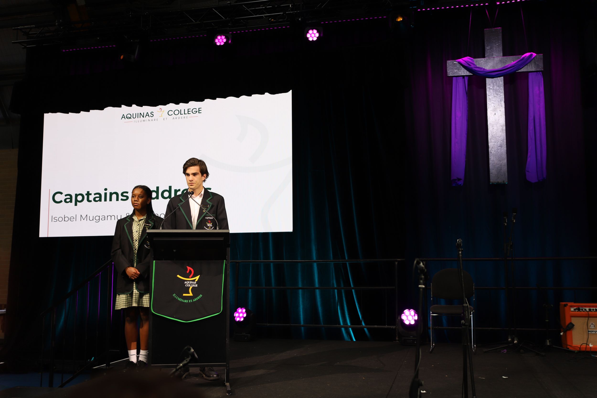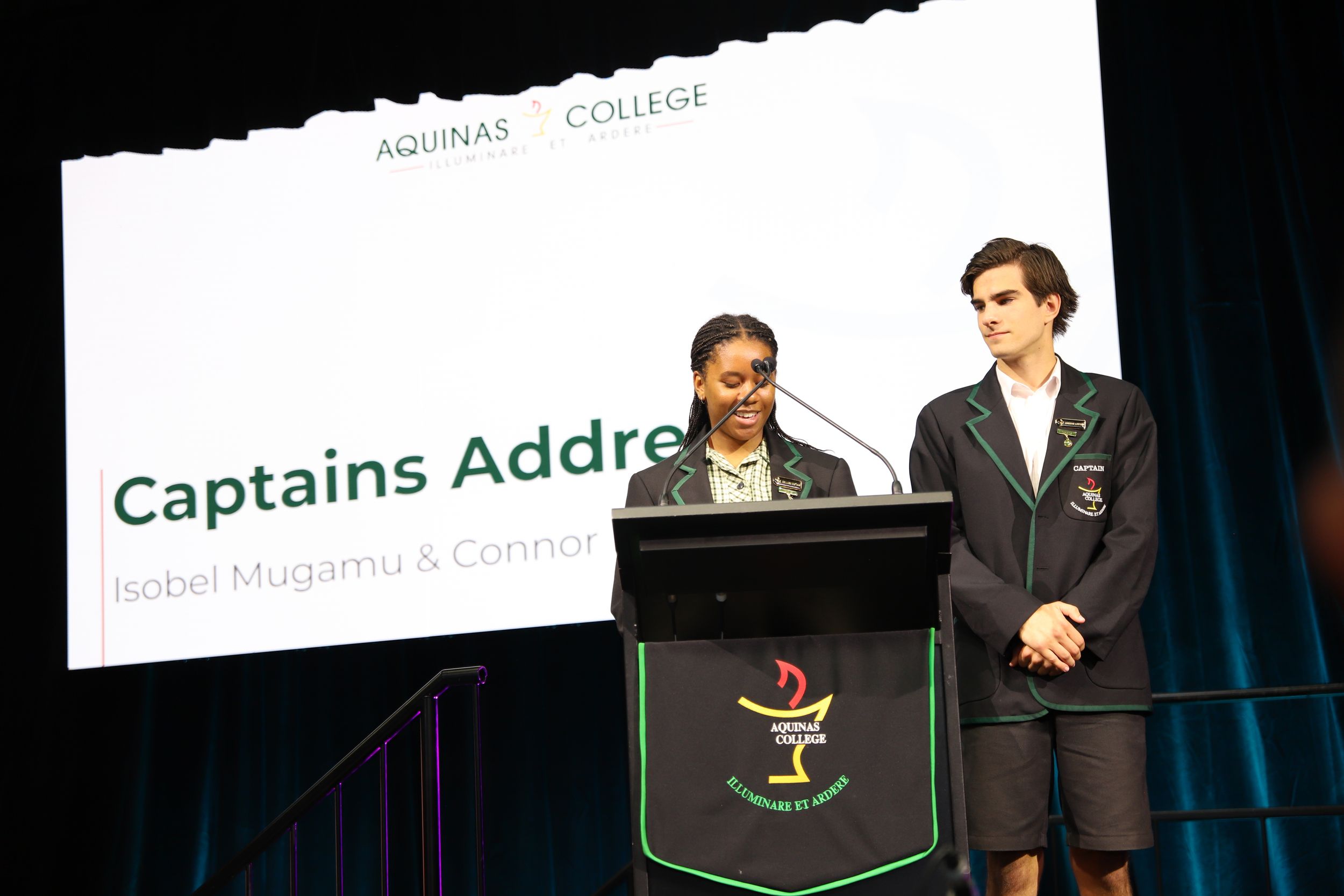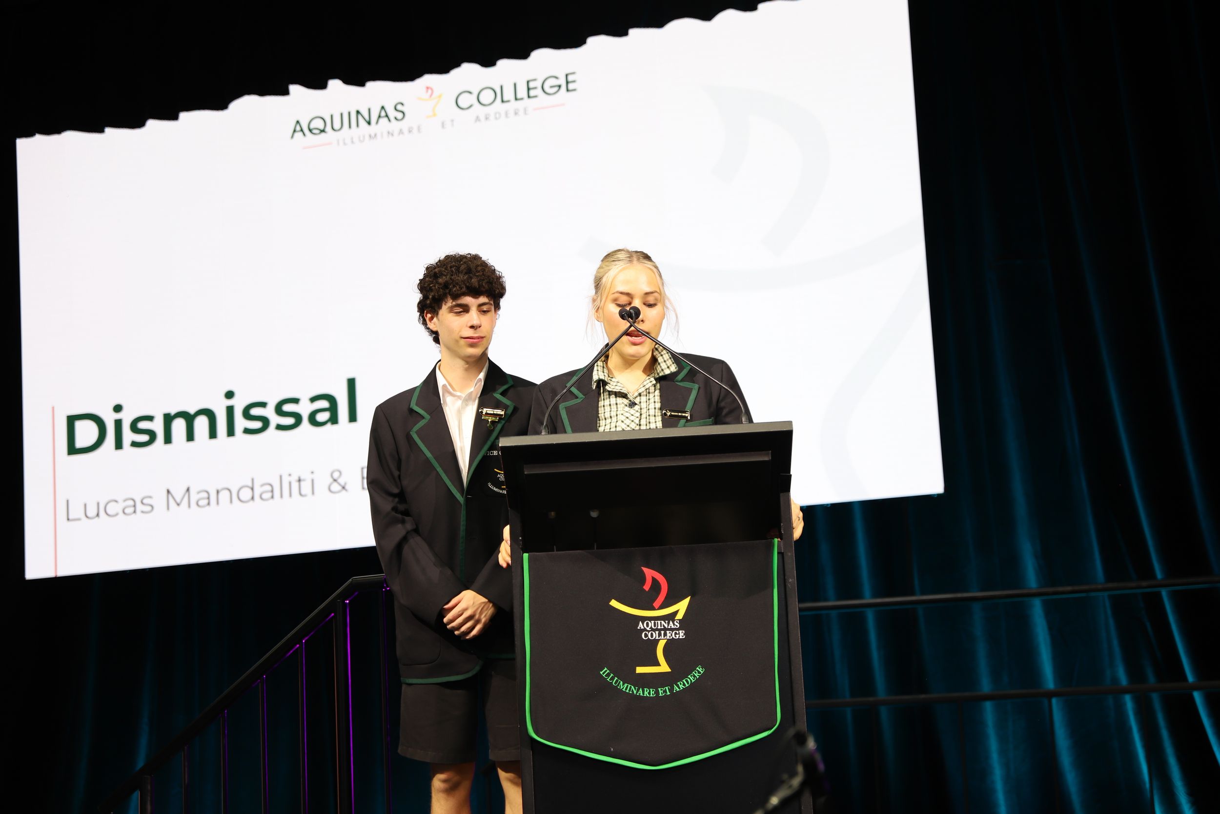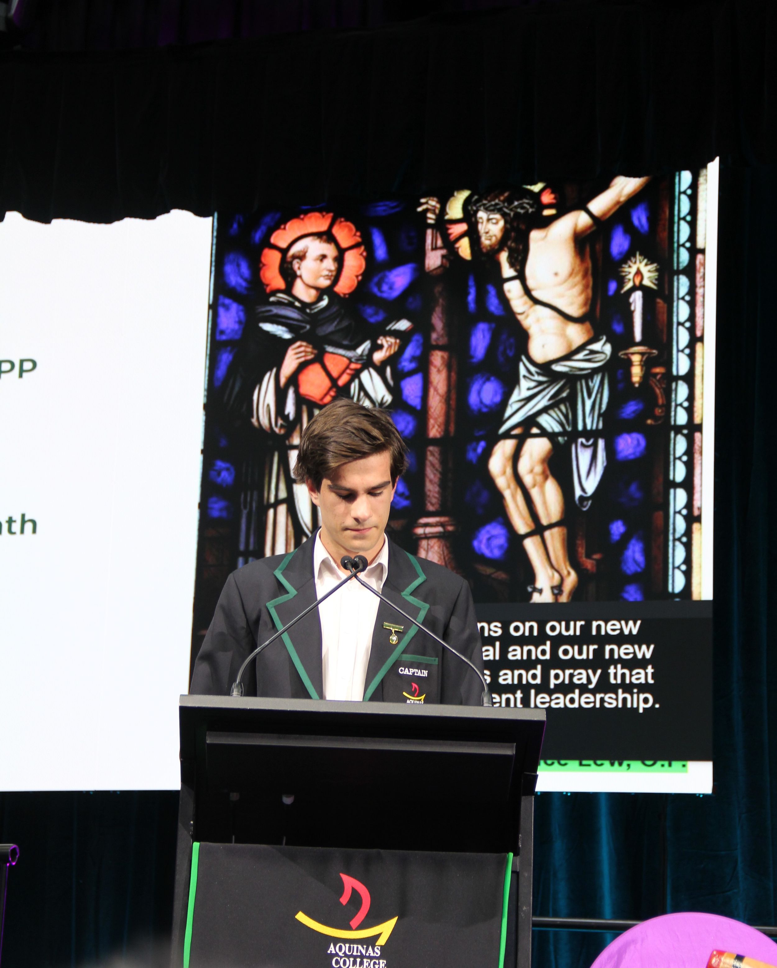 A common theme among various student addresses to the assembly was exhorting students to participate in the many opportunities at Aquinas, as elucidated by 2023 Year 11 Dux and 2024 Vice Captain Lucas Mandaliti: