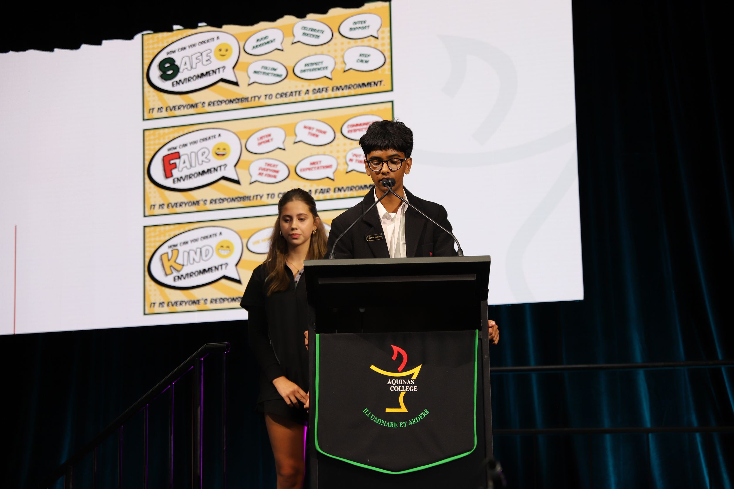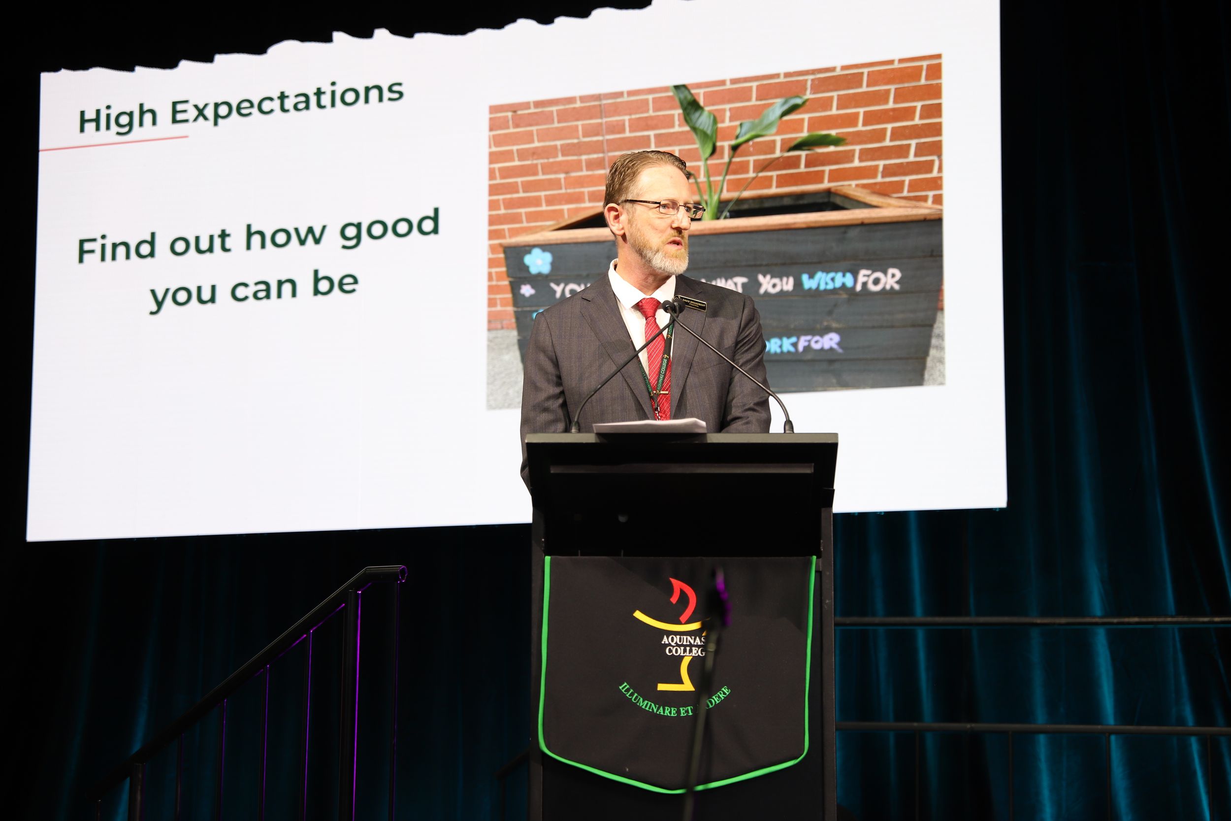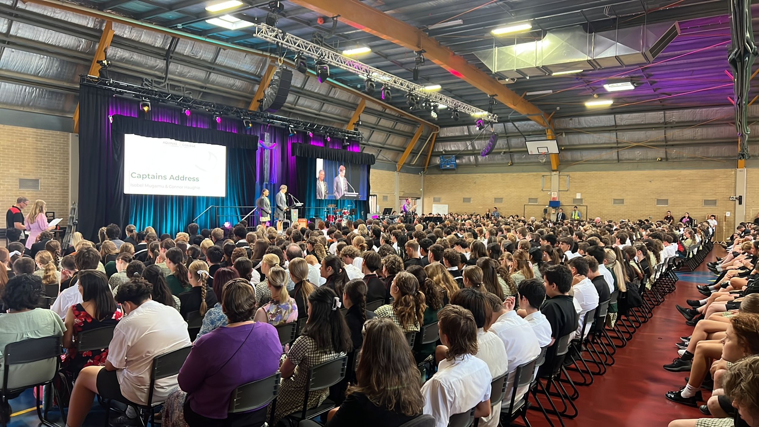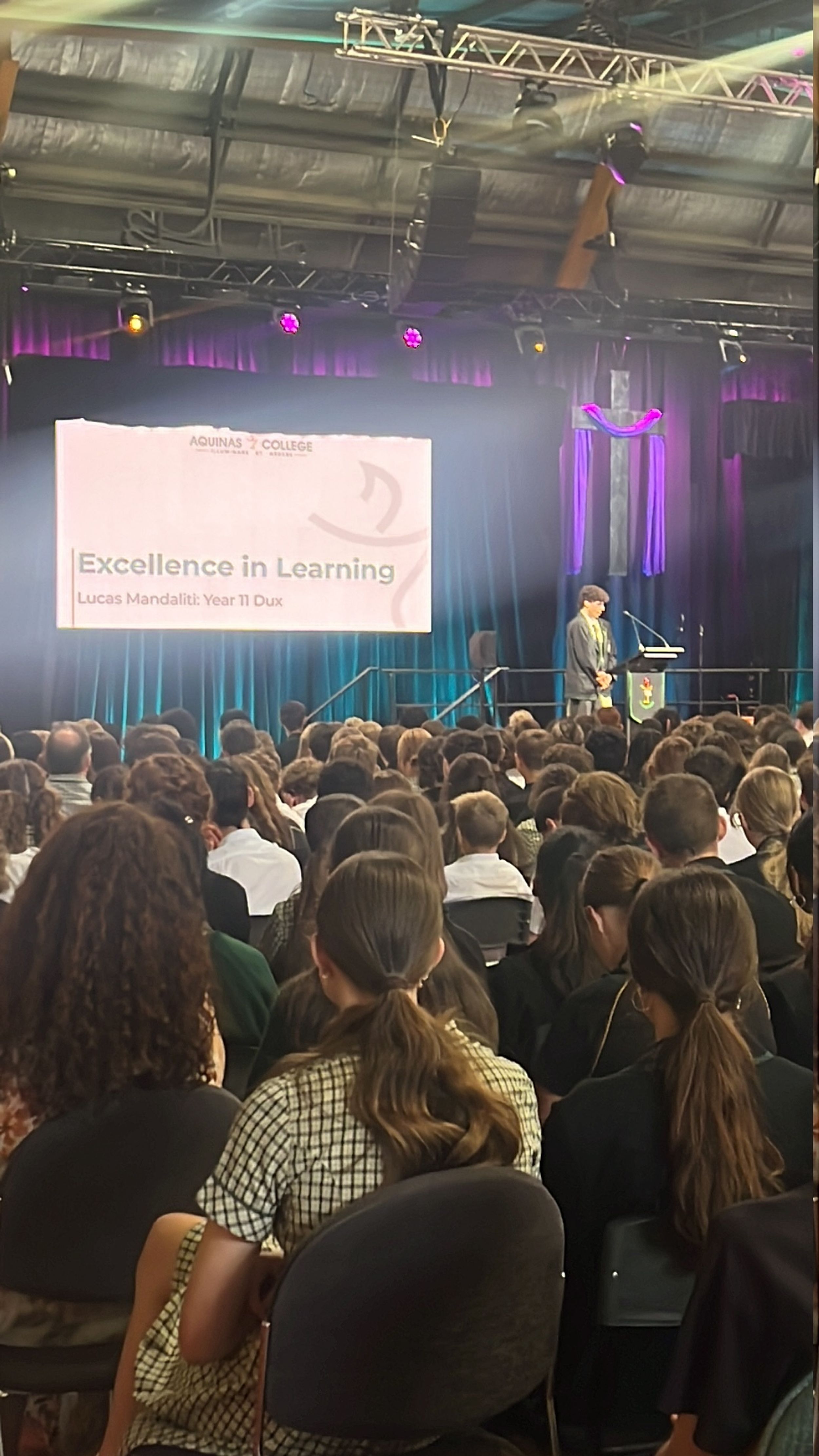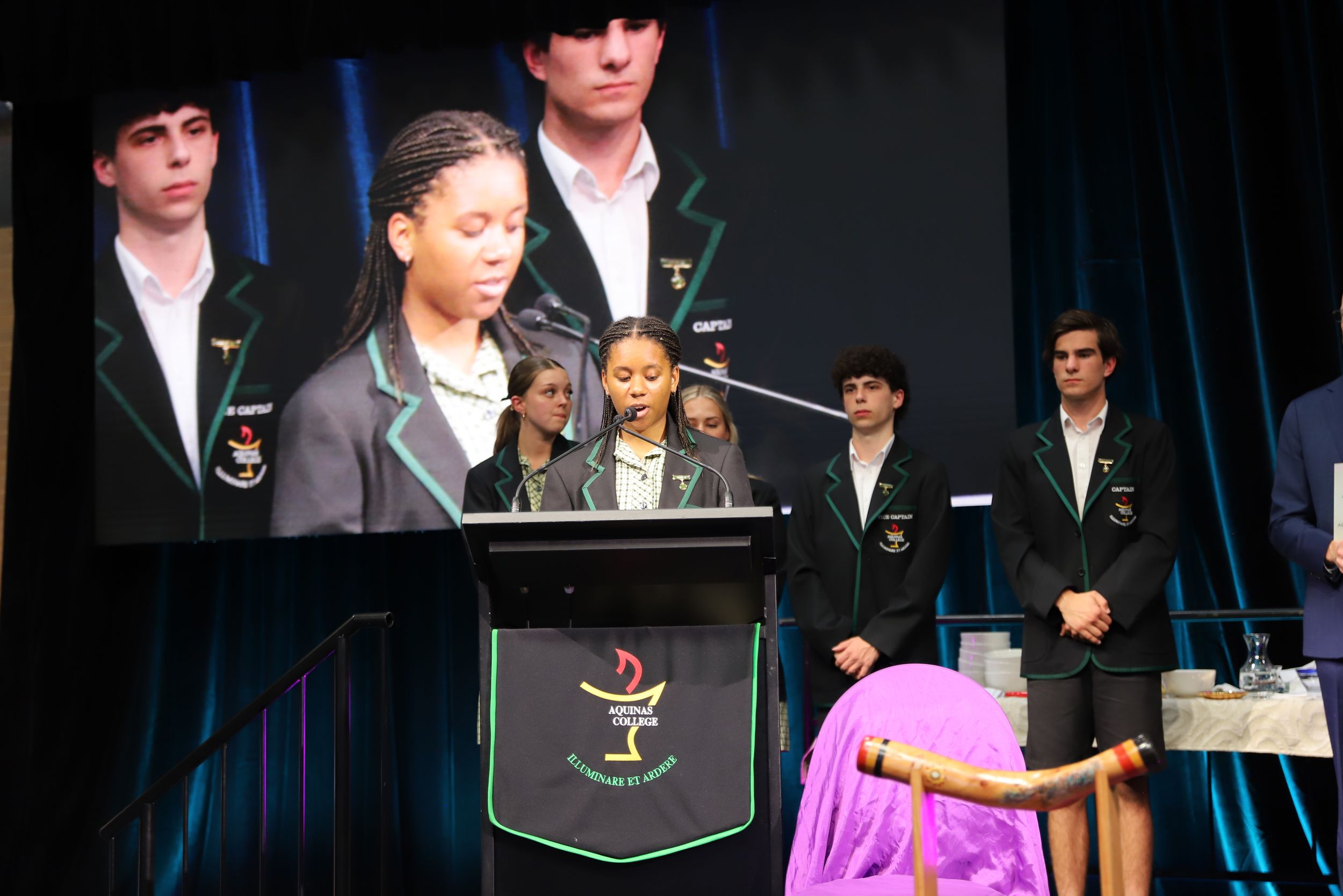 A common theme among various student addresses to the assembly was exhorting students to participate in the many opportunities at Aquinas, as elucidated by 2023 Year 11 Dux and 2024 Vice Captain Lucas Mandaliti: