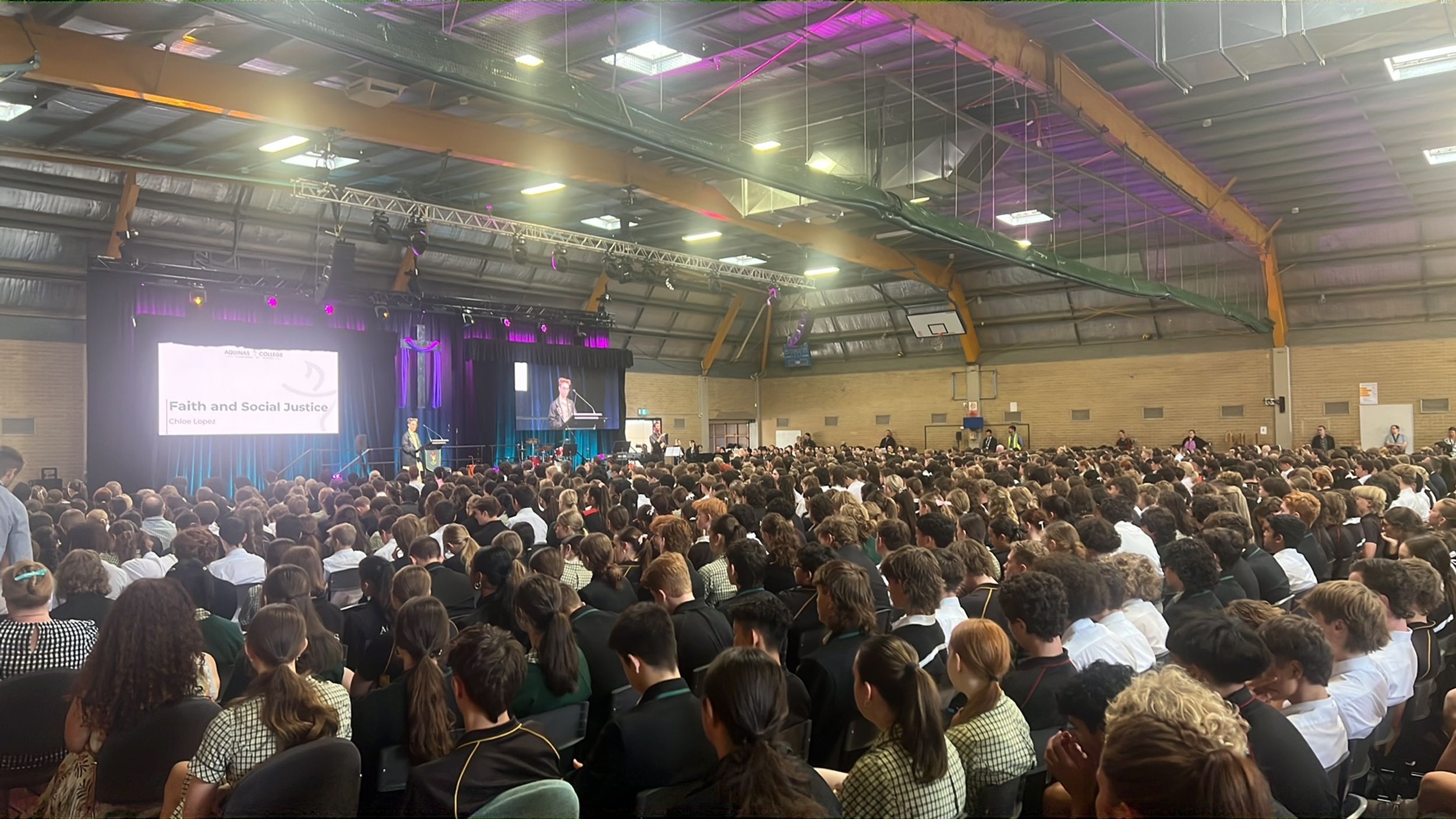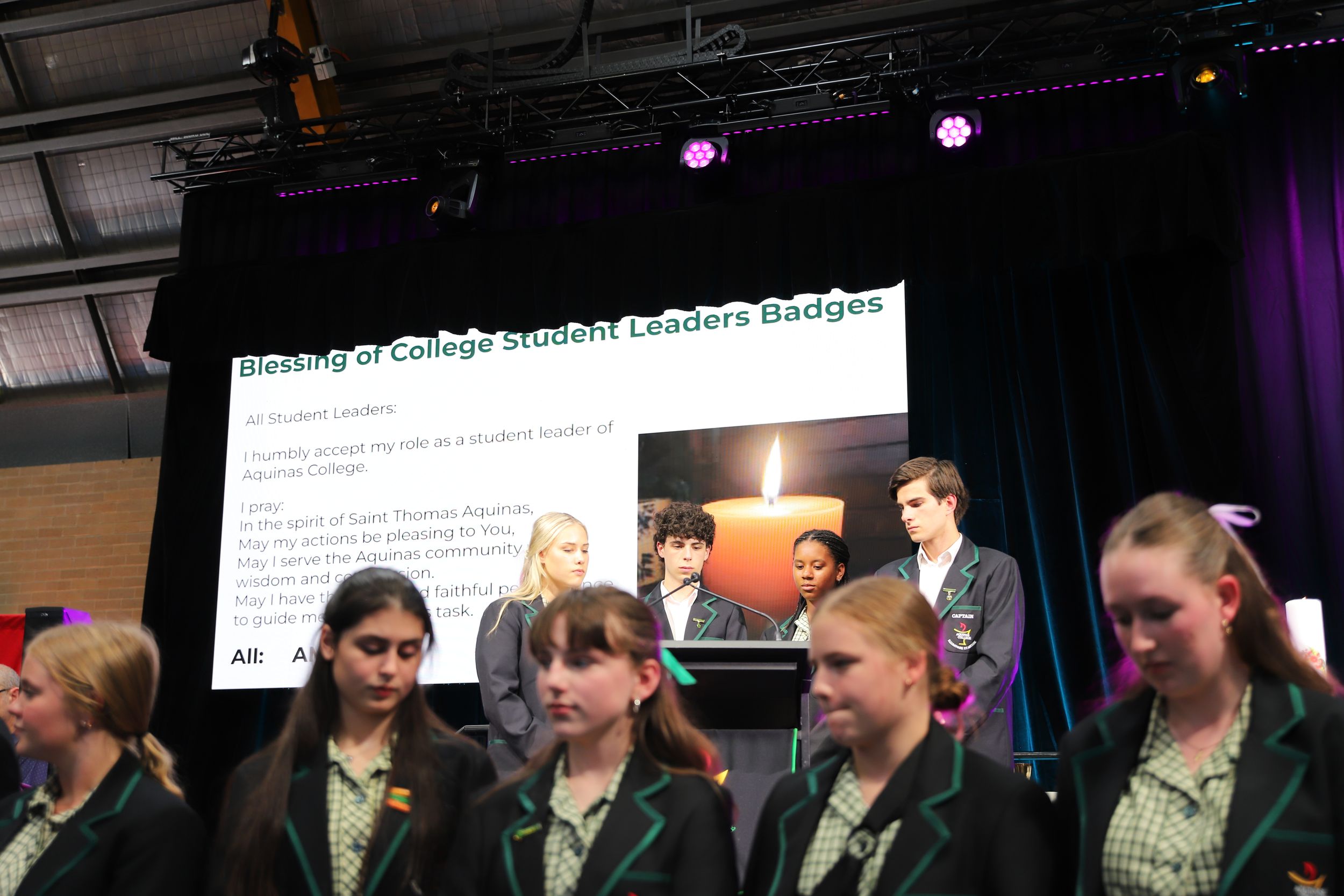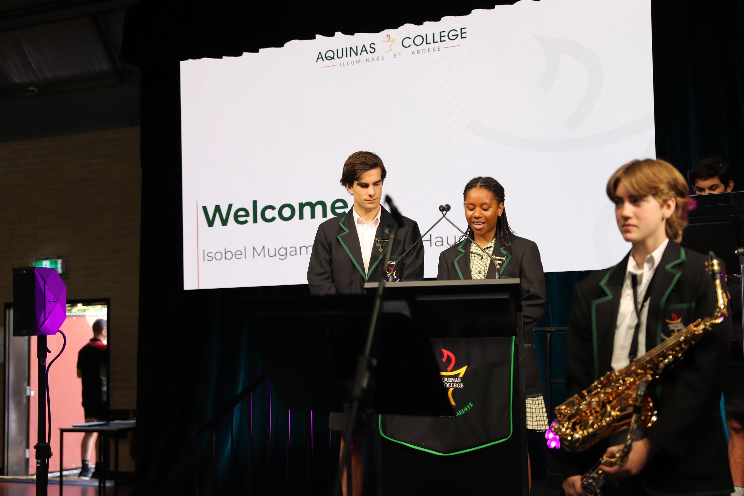 It was a great delight to then have student leaders present all items at our College Assembly the next morning (bar the Principal’s address!). This assembly witnessed the Aquinas tradition of welcoming our Year 7 students as they paraded into the assembly, with Alex and Indiana providing a response on behalf of their Year 7 peers. Once again, we were blessed with the musical talents of our students enlivening the assembly.