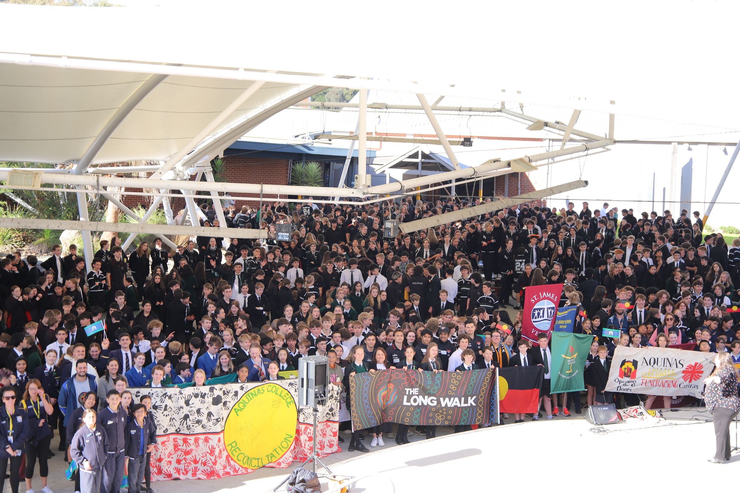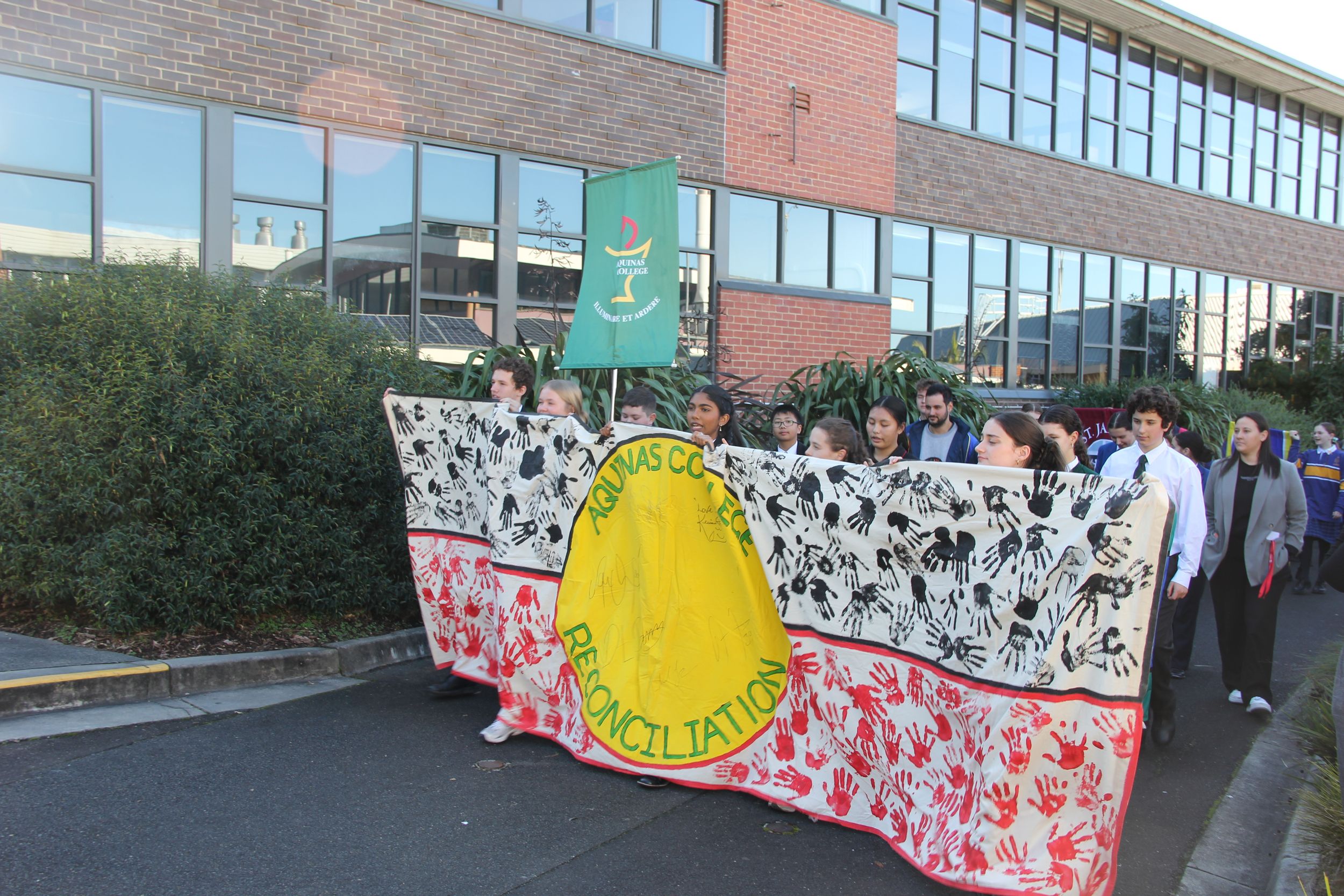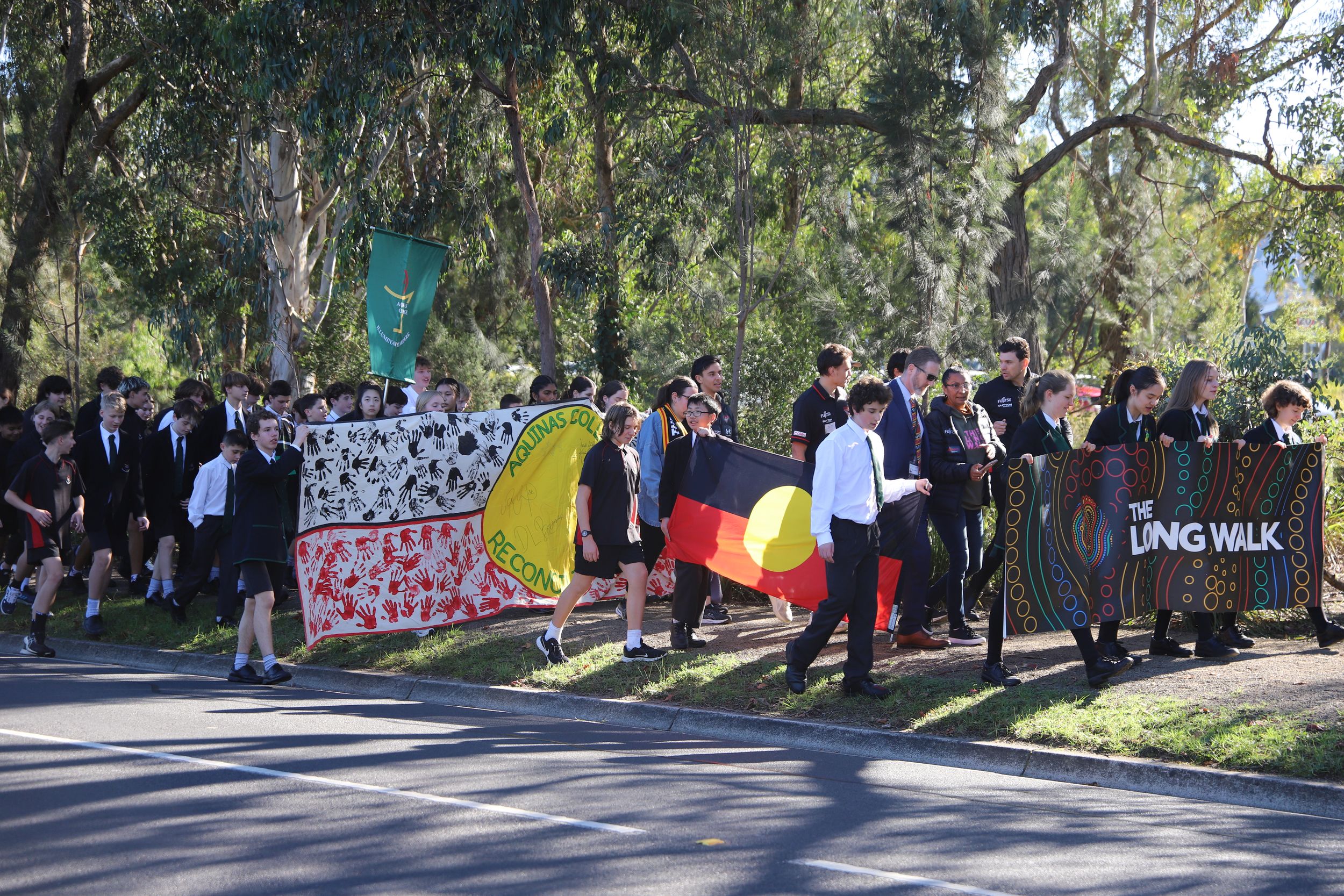 On Monday 27 May, we were blessed to host the Aquinas Long Walk, exemplifying bridge-building and learning from those we ‘met’ along the road, including guests from The Long Walk Foundation, Opening the Doors Foundation, Nova Peris, indigenous Essendon footballers, and local primary and secondary schools. As Christians, we know that reconciliation is not just a noun but a verb: an action we take to heal relationships with others. Our indigenous guests shared their stories and our larger Australian story - one that started well beyond 65,000 years ago - to provide ‘illumination’ that breeds understanding.